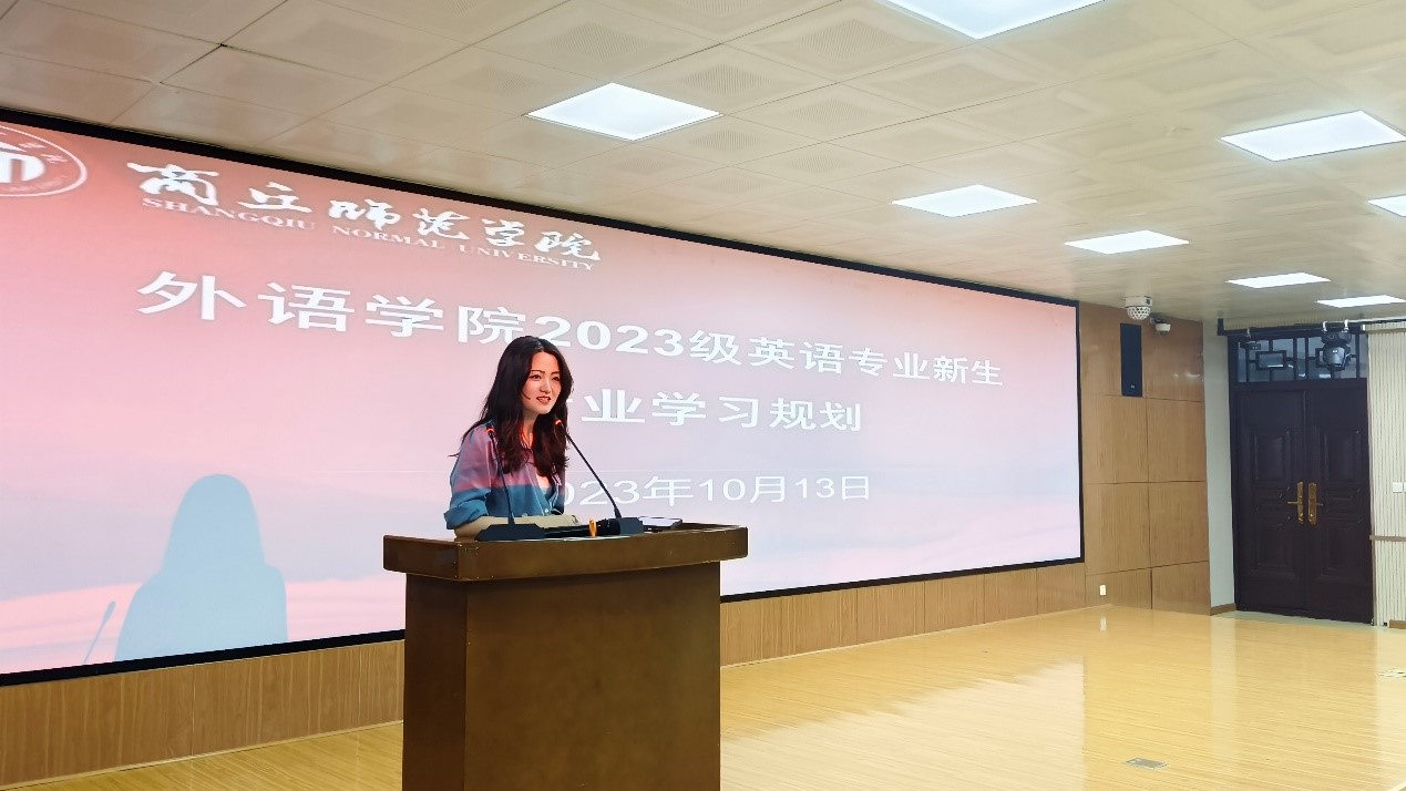 林富丽老师就英语专业人才培养方案、学业导师制、职业资格考试、学科竞赛等分别向新生作了细致解读,引导新生科学规划大学生活,努力学习,不断探索,努力成为具有家国情怀、全球视野、专业本领的复合型人才。