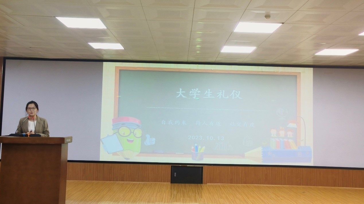 刘桃桃老师从大学生综合素质发展的角度出发对同学们进行了大学生礼仪教育,刘老师给同学们提出了三点建议:自我约束、待人有道、社交有度,希望同学们通过对现代礼仪的学习,来改善自身形象、改善自身行为、打造良好的师生和人际关系。