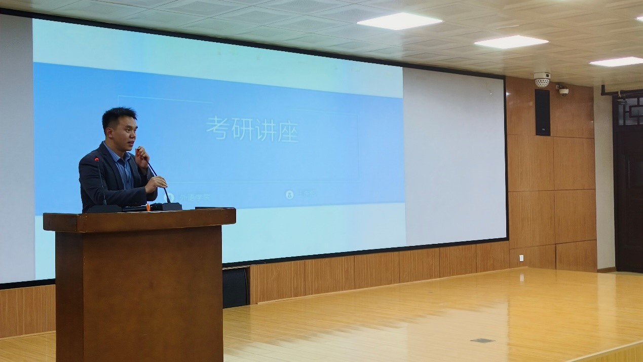 王东阳老师向同学们讲解了硕士研究生考试及相关知识,介绍了考研的科目,专业及院校选择方法等,并与同学们分享了专业课复习方法和备考资料,使同学们对考研有了初步了解。