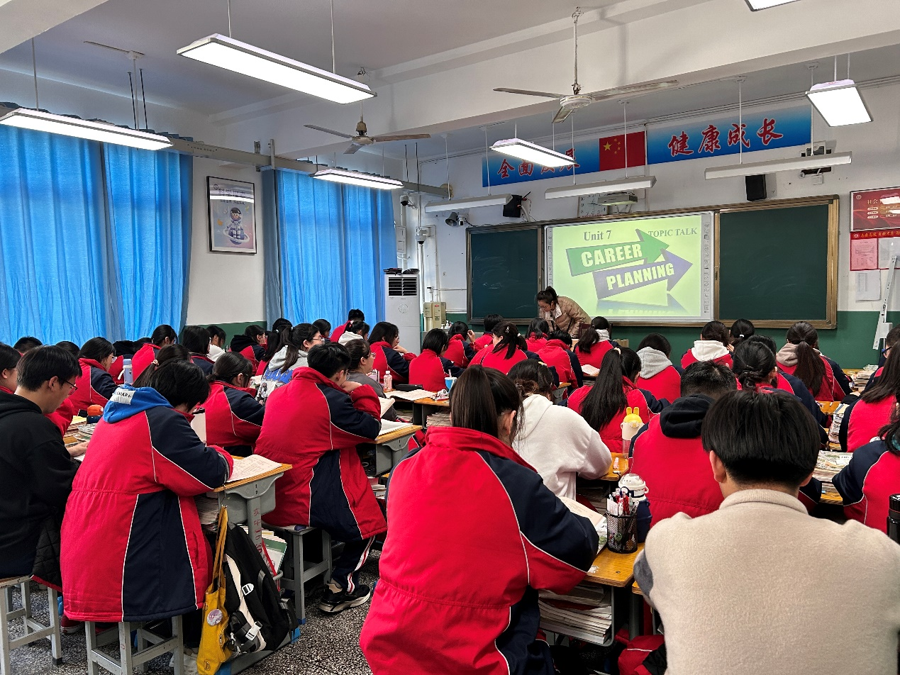 坊员进入课堂进行观摩学习,在课堂上老师同学热情互动,课堂氛围轻松和谐,学生们积极回答,尽显高中生活的趣味性。坊员认真感受课堂氛围,观察老师与学生的互动,并拿出笔记本记录相关要点,学习教学实践技能。观察许老师是如何开展教学的,导入环节,练习环节,提问技能等教学方法生动地展现在坊员眼前,新媒体技术的应用与嵌入让课堂变得更加方便直接。