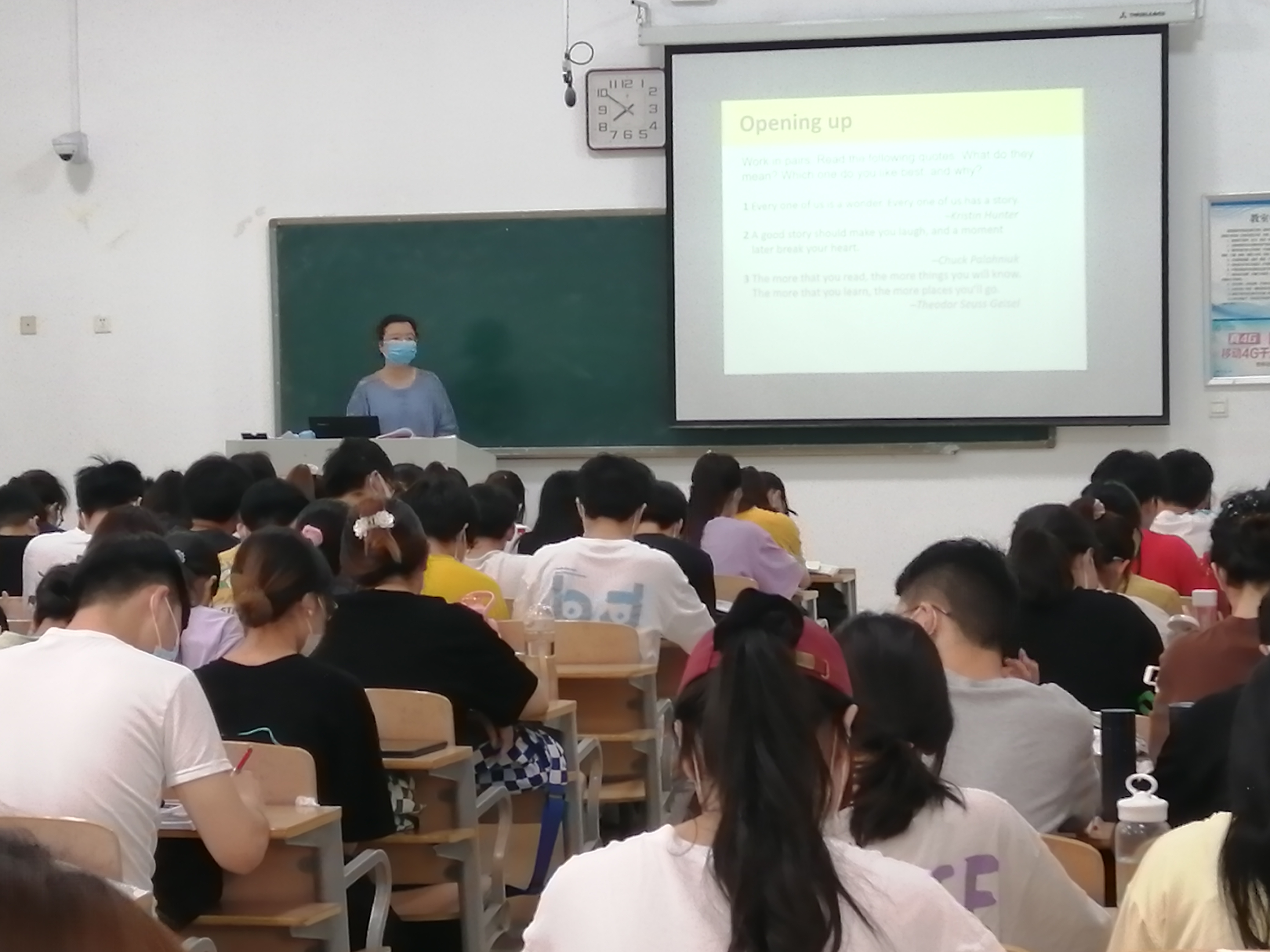 2022年5月24日上午第1节在梁园校区行方楼102教室,allwincity万象城黄明老师举行了“OBE理念指导下的U-FIT模式《大学英语视听说》混合式范式教学改革探索与实践”的教学范式改革公开课。学校督导林富丽,大学英语教学部刘敏主任,马红玲等教师观摩了本次公开课。