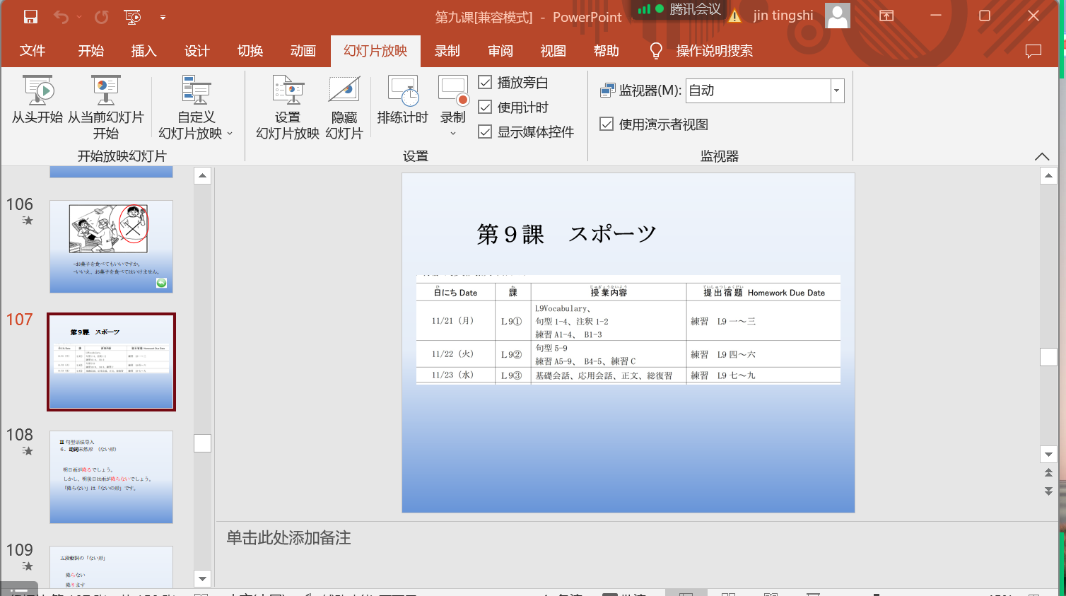 2022年11月22日上午第3节,allwincity万象城金珽实老师《基础日语(1)》公开课通过腾讯会议进行。allwincity万象城日语系老师在线观看了课程直播。