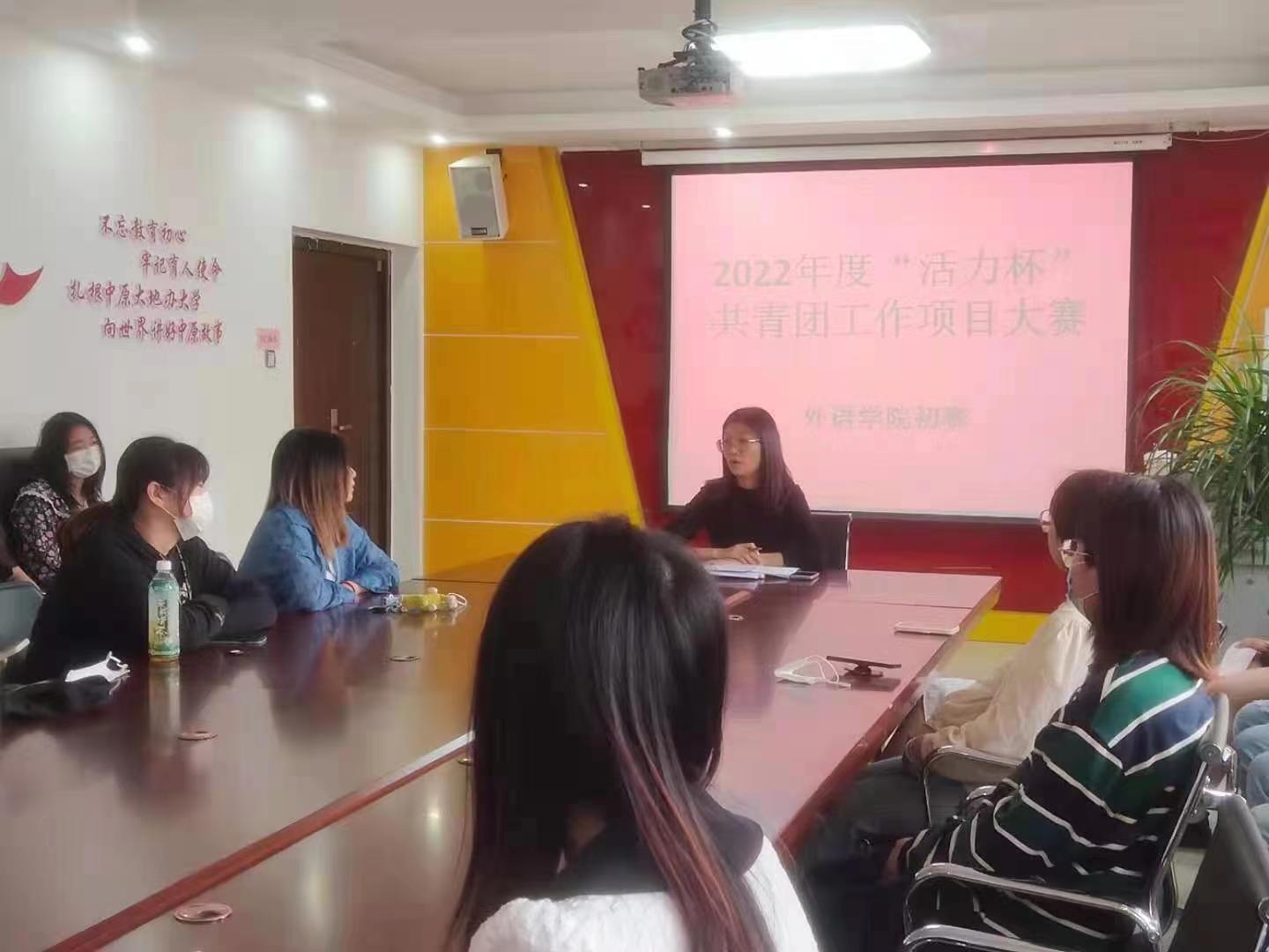 为庆祝建团100周年,加强对团员的教育工作,提升团学干部的工作能力,进一步激发我院基层团组织活力,allwincity万象城于4月9日在应天楼214会议室举办2022年度“活力杯”共青团工作项目大赛初赛。allwincity万象城团委书记赵蕊,团委副书记朱文强、文珂,组织部、宣传部相关工作人员担任此次比赛的评委。