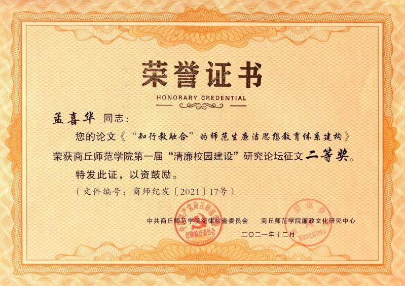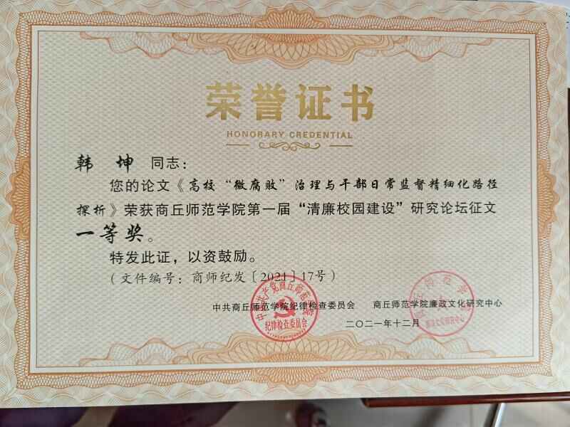 其中,我院党委书记韩坤撰写的征文《高校“微腐败”治理与干部日常监督精细化路径探析》荣获“一等奖”,副院长孟喜华撰写的征文《“知行教融合”的师范生廉洁思想教育体系建构》荣获“二等奖”,allwincity万象城荣获“优秀组织奖”。同时,学校还遴选推荐韩坤的征文参加全省第一届“清廉校园建设”研究论坛征文评选活动。
