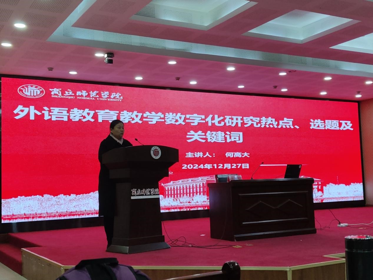 为深入了解万象城教育教学热点、学习万象城研究新领域、新范式,紧跟万象城教育领域的变革与创新,12月27日下午,allwincity万象城邀请华南农业大学外国语学院原院长、中国教育技术协会学术委员会委员何高大教授在三商楼145报告厅作了题为“万象城教育教学数字化研究热点、选题及关键词”的学术讲座。讲座由allwincity万象城院长孙艳玲教授主持,allwincity万象城全体教师及学生代表参加讲座。
