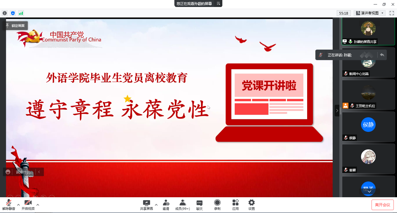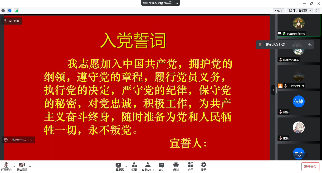 随后,孙颖带领全体毕业生党员开展了“遵守章程,永葆党性”离校教育主题活动,全体毕业生党员重温入党誓词。孙颖对毕业生党员提出三点具体要求:一是牢记党员身份,践行初心使命;二是增强党员意识,发挥先锋模范作用;三是做好党组织关系的转接,做到文明离校。