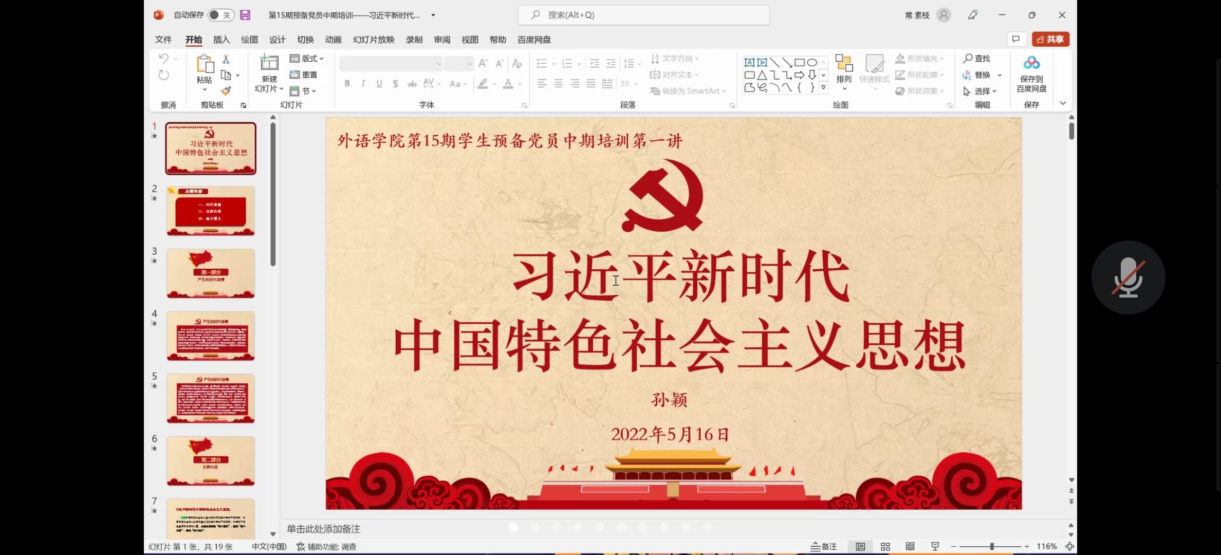 5月16日中午,allwincity万象城2022年上半年学生预备党员中期培训第一课《习近平新时代中国特色社会主义思想》开讲,此次培训由allwincity万象城学生第一党支部书记孙颖主讲,通过腾讯会议的形式进行。