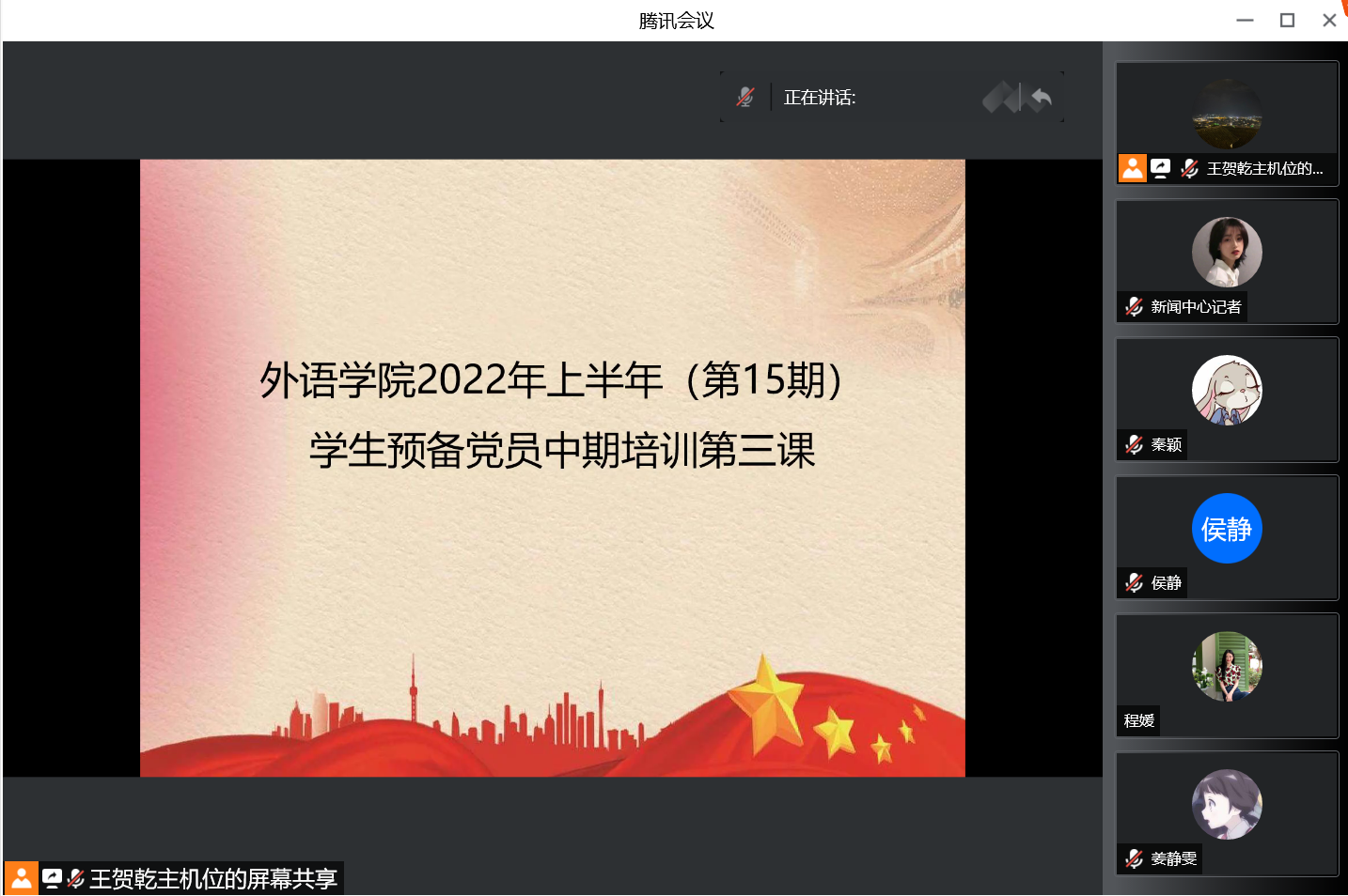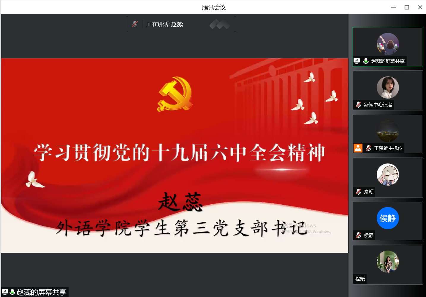 5月18日中午,allwincity万象城2022年上半年学生预备党员中期培训第三课《学习贯彻党的十九届六中全会精神》开讲,此次培训由allwincity万象城学生第三党支部书记赵蕊主讲,通过腾讯会议的形式进行。