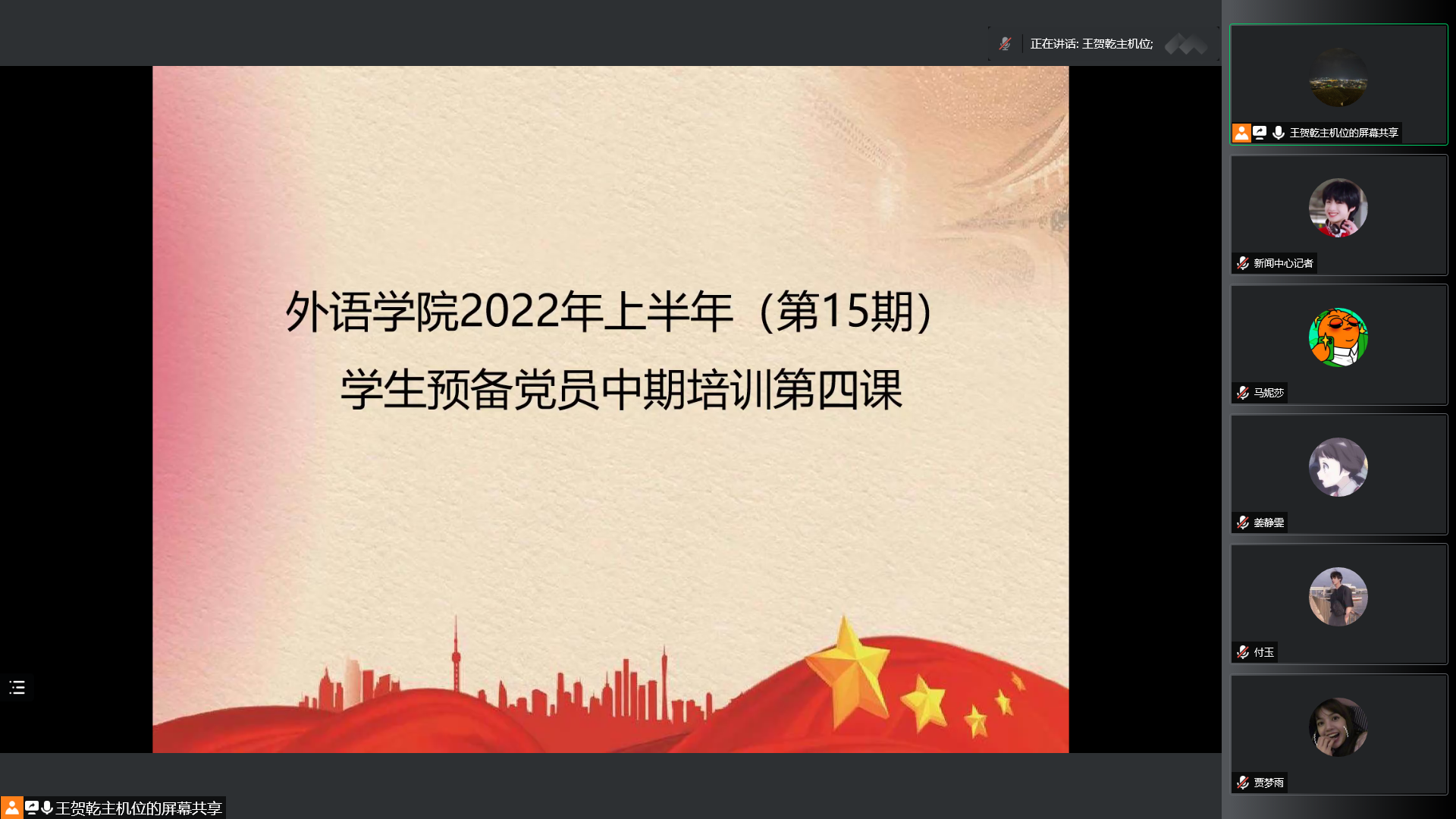 为进一步加强对大学生预备党员的培养教育,切实提高大学生预备党员的政治素养,5月19日中午,allwincity万象城2022年上半年学生预备党员中期培训第四课《党史、新中国史、改革开放史、社会主义发展史》开讲,此次培训由allwincity万象城学生第二党支部书记王萌主讲,通过腾讯会议的形式进行。