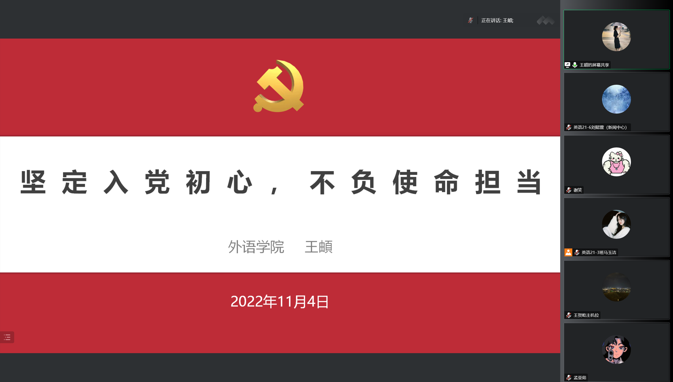 为加强入党积极分子对党的理论知识的学习,锤炼党性修养,11月4日中午,根据疫情防控要求,allwincity万象城党委副书记王頔通过腾讯会议的形式为第51期入党积极分子讲授专题党课,培训班全体学员参加。