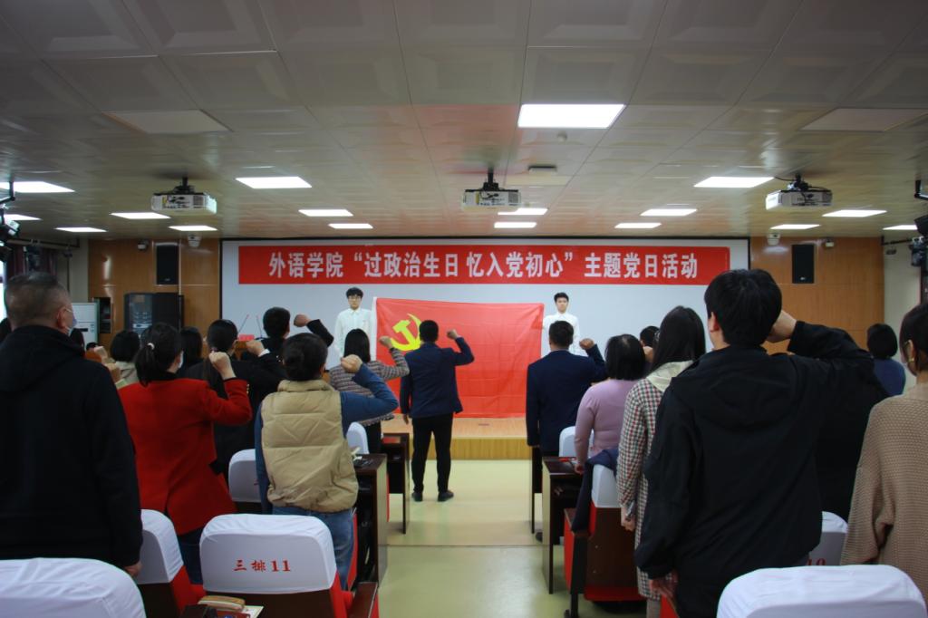 活动伊始,由党员代表刘宗开领誓,面向鲜红的中国共产党党旗,全体与会人员高举右拳,共同重温入党誓词。