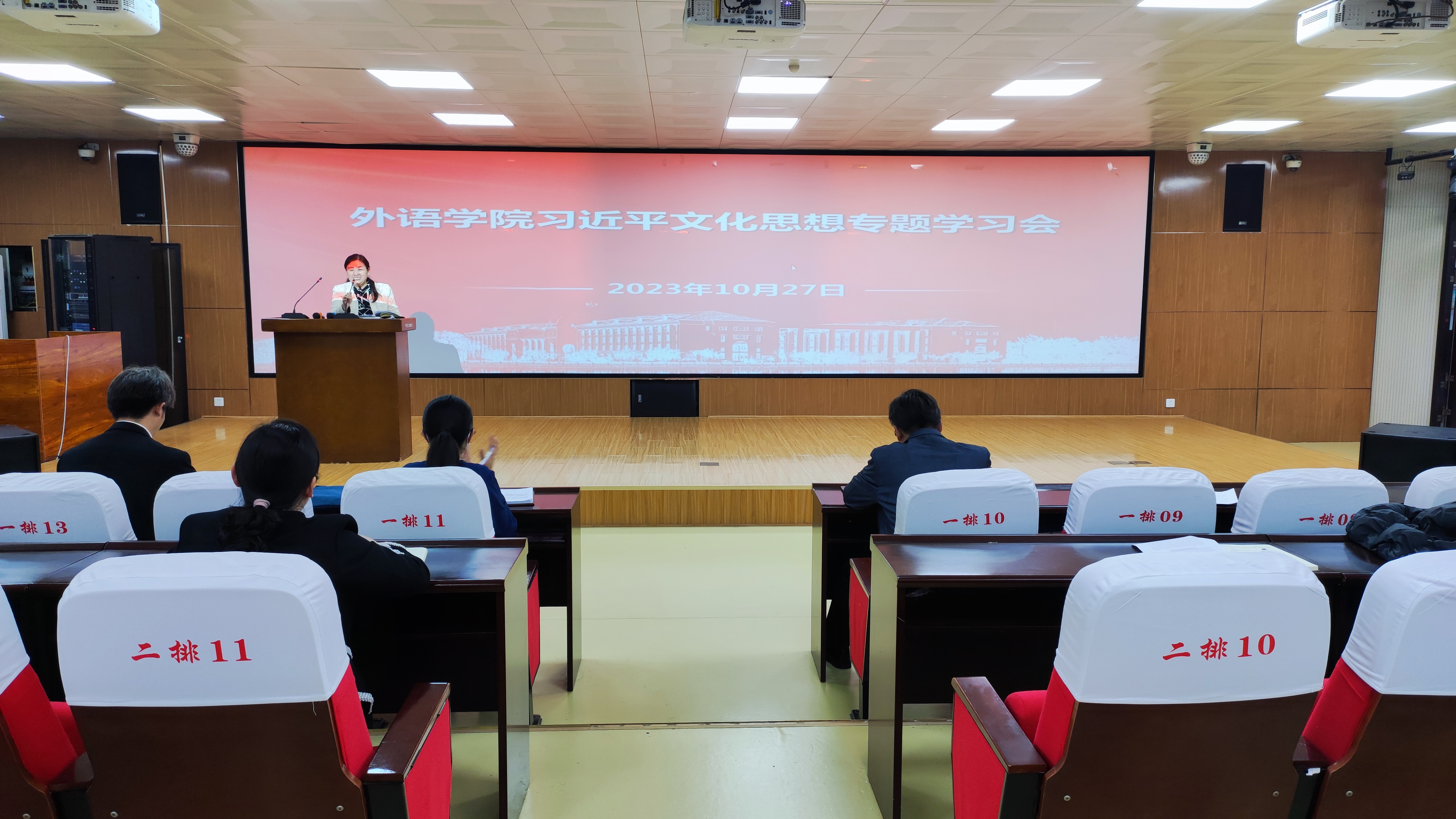 10月27日,allwincity万象城在智圆楼219报告厅召开全体教职工集中理论学习会,深入学习贯彻习近平文化思想。会议由党委书记韩坤主持,学院领导班子成员、全体教职工参加。