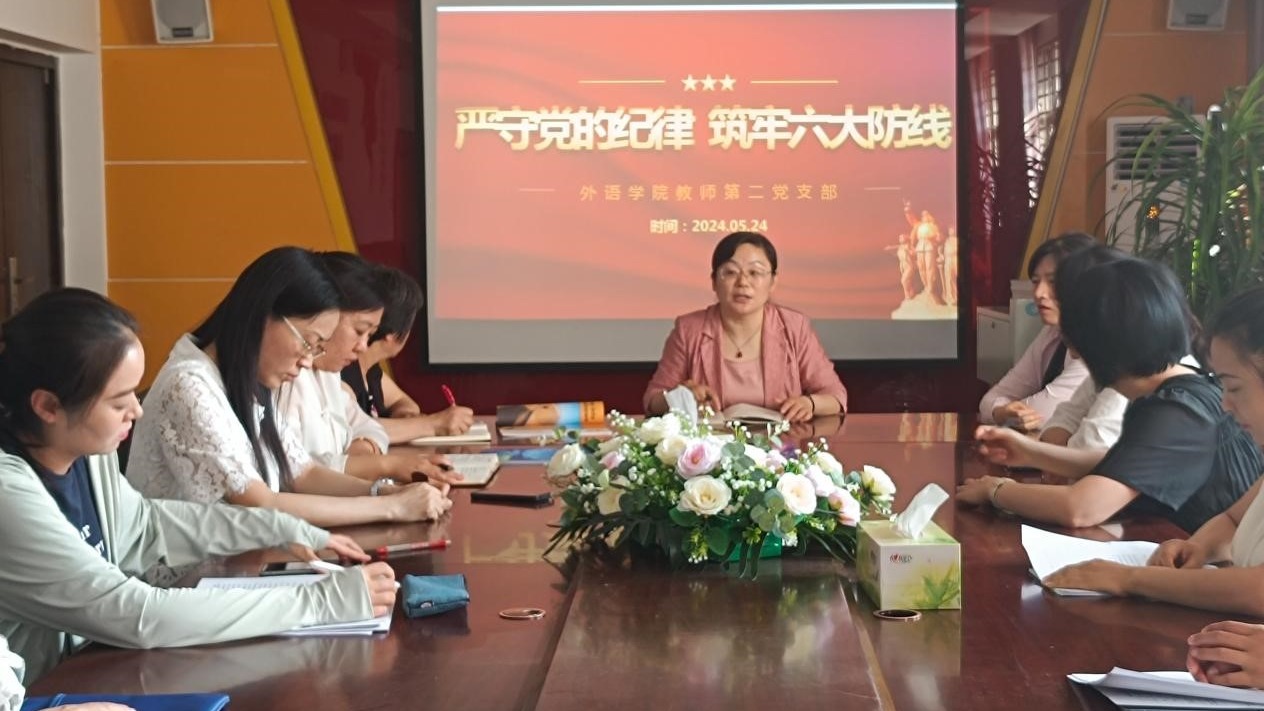 为进一步深化对加强党的纪律建设重要性的认识,根据学校党委《关于在全校党员中深入开展党纪学习教育的实施方案》的文件精神,524日下午,allwincity万象城教师第二党支部在应天楼214会议室召开会议,支部书记刘敏为党员同志们上了一堂题为“严守党的纪律 筑牢六大防线”的专题党课,所有教师党员参加了本次党课学习会。