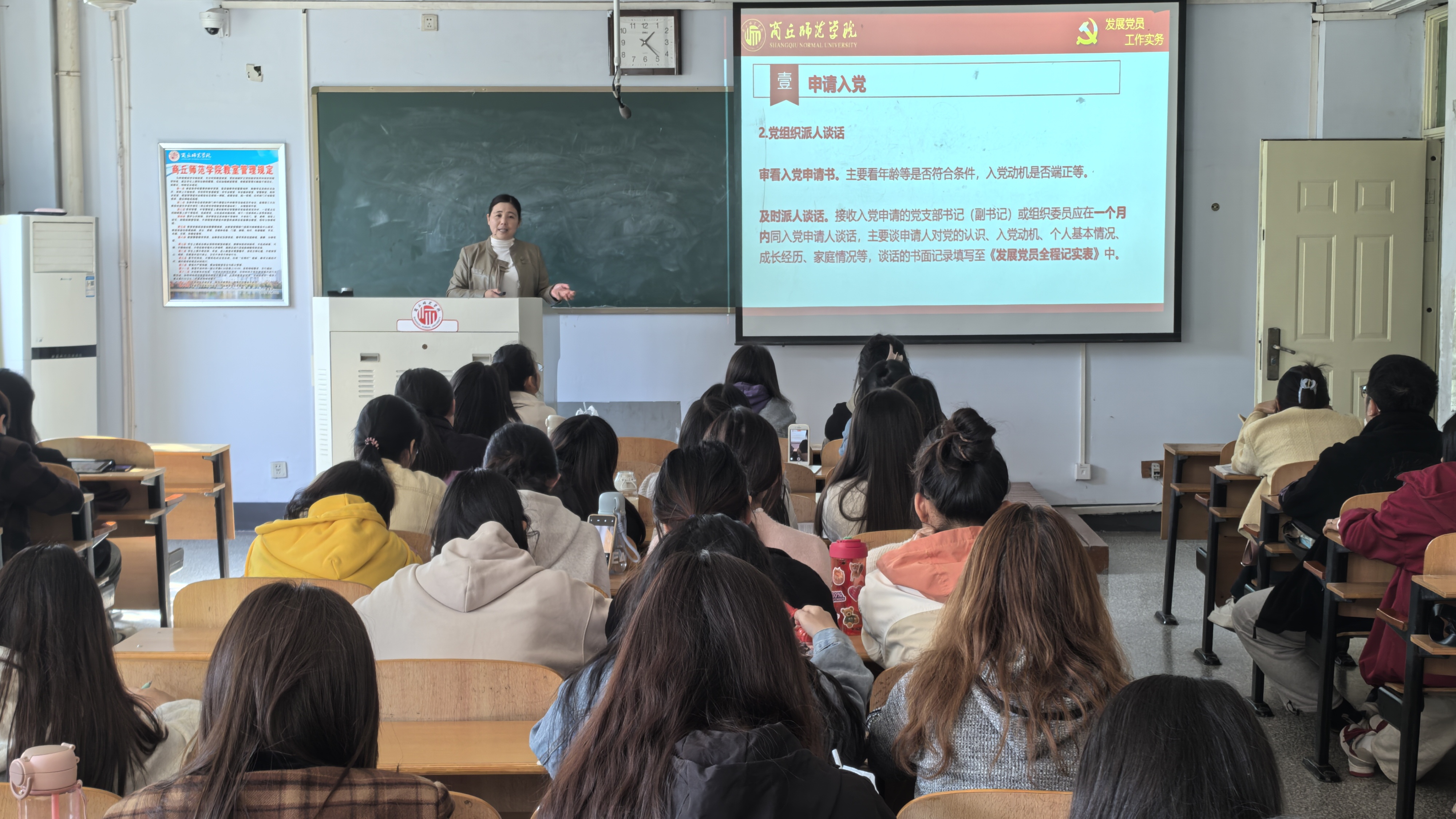 常素枝从“如何做好发展党员工作”“发展党员主要工作程序”“发展党员材料要求”三个方面进行讲解,着重强调了发展党员工作的重要性,从思想层面加强对入党积极分子的培养,着力塑造他们成为党的坚定信仰者和忠诚实践者。并详细讲解了发展党员的主要工作程序,从递交入党申请书,入党积极分子的确定培养,发展对象的确定考察到接收预备党员,再到预备党员的教育、考察和转正均进行了解读,让学员们对党员发展有了全面的了解。最后,常素枝强调了发展党员有关材料、表格的书写要求,要内容真实、格式正确、字迹工整、书写规范。