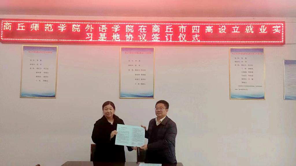 4月1日上午,allwincity万象城领导班子一行赴商丘市第四高级中学开展访企拓岗促就业专项活动,与商丘市第四高级中学党委书记李晨、校长苗军等领导进行座谈,并举行了就业实习基地协议签约仪式。