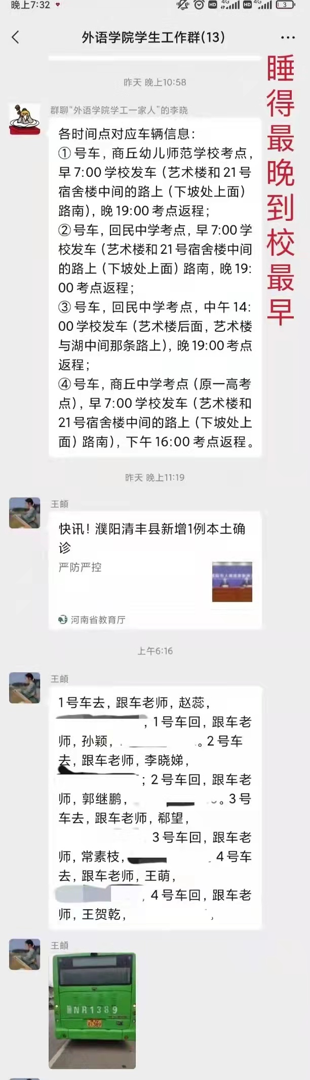 迎着朝霞,冒着春雨,踏着星夜,不仅有送迎考的专车,更有我们分组护航的辅导员老师。