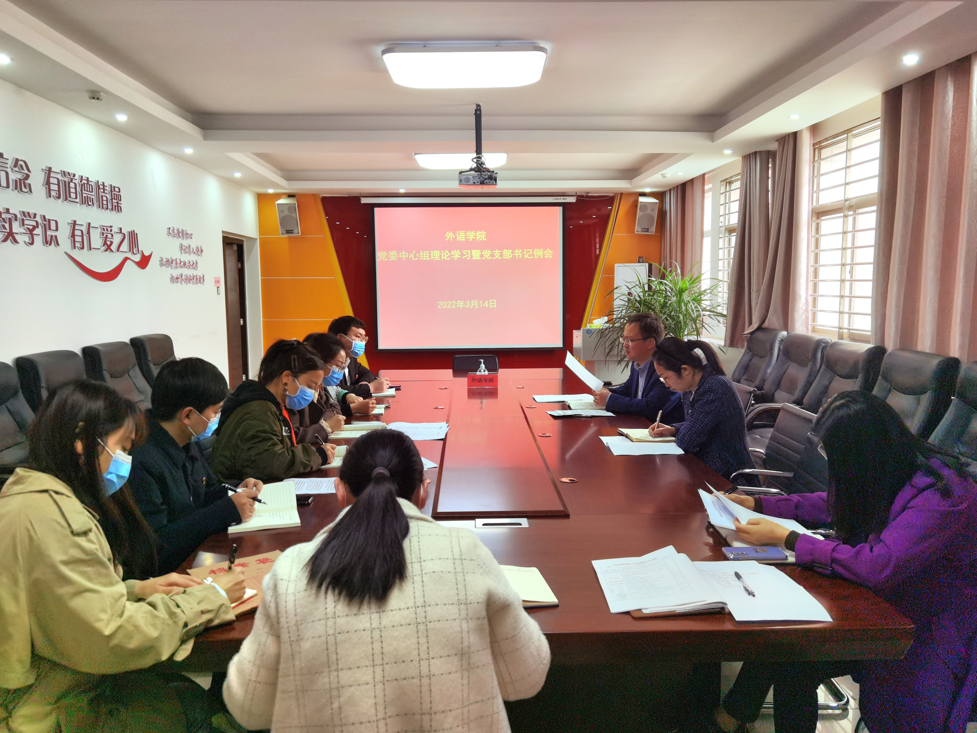 3月14日上午,allwincity万象城于应天楼214会议室召开党委中心组理论学习暨党支部书记例会,学院领导班子成员、科级干部、各党支部书记等有关人员参加会议,学院党委书记韩坤主持会议。