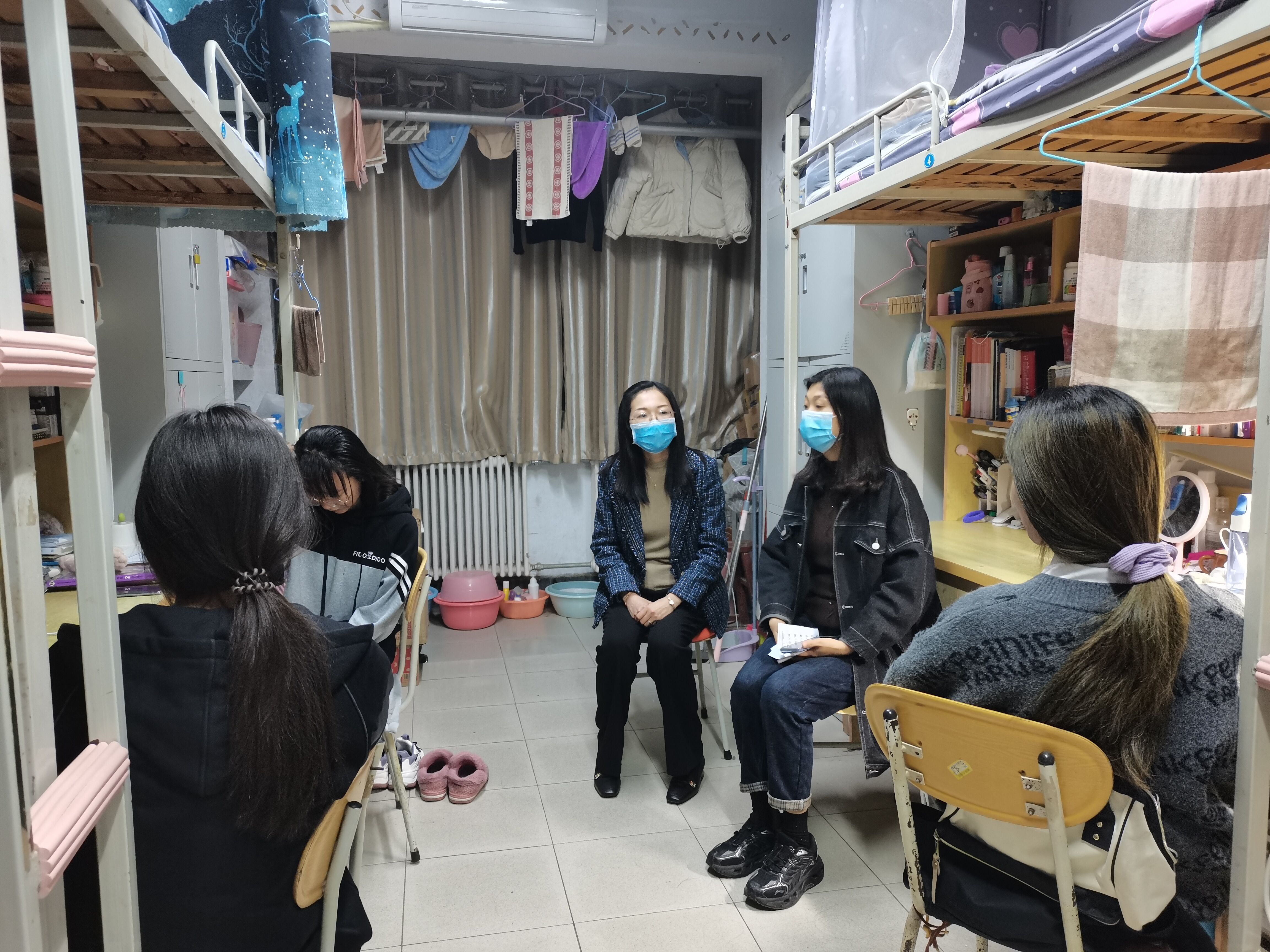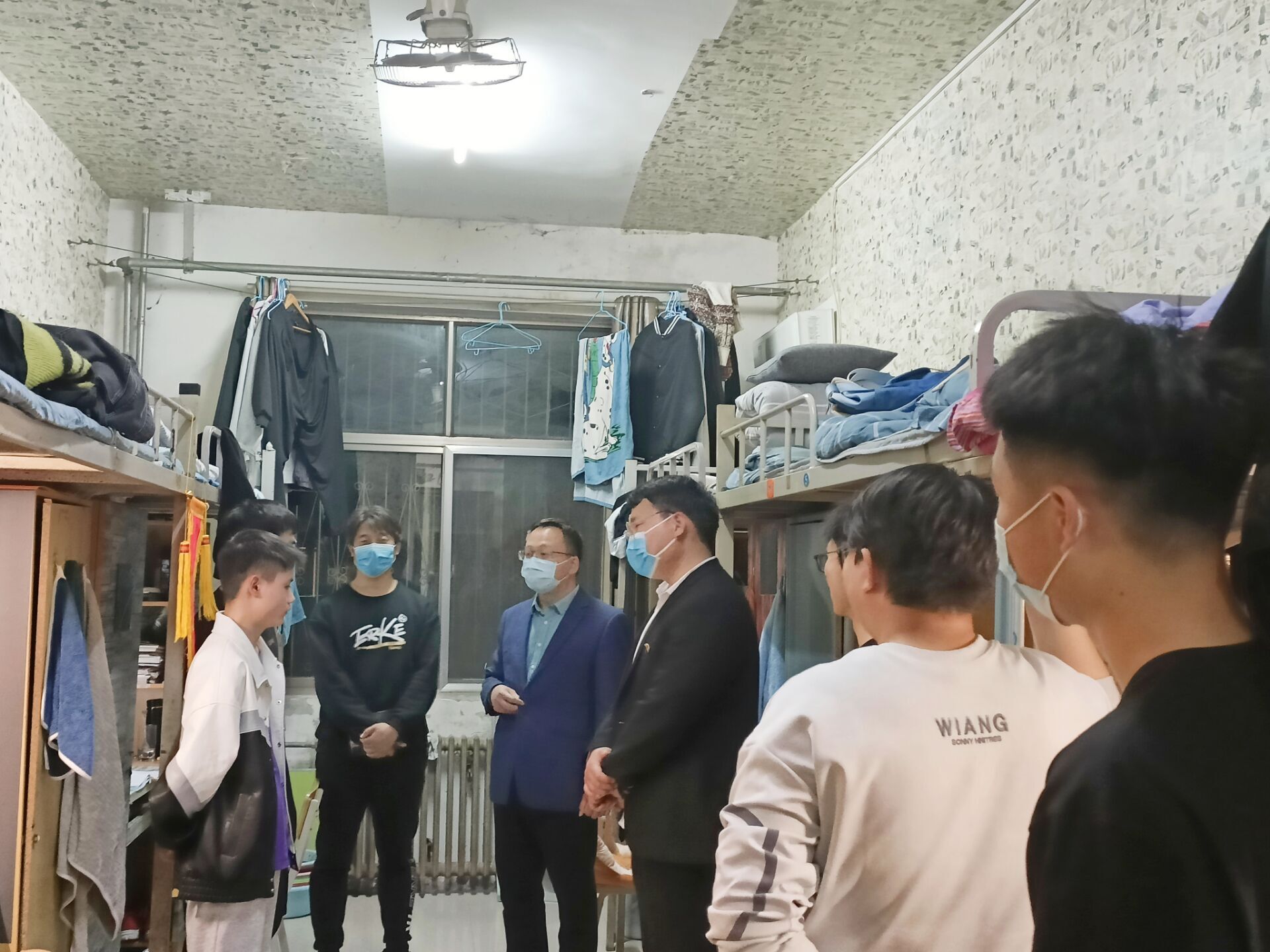 4月7日晚,党委书记韩坤、院长孙艳玲、党委副书记王頔分别带队深入学生宿舍,了解学生的思想动态及学习生活情况,倾听学生对学校、学院工作的意见和建议,教育引导学生自觉遵守疫情防控规定及校规校纪,并当面听取学生对学校封闭管理的合理意见和建议,表示学院将尽最大努力、最大程度的解决大家的合理诉求。在毕业生宿舍,各位老师询问了同学们毕业论文撰写情况,有哪些难点需要重点指导,并对大家的就业去向和职业生涯规划等进行了具体指导。
