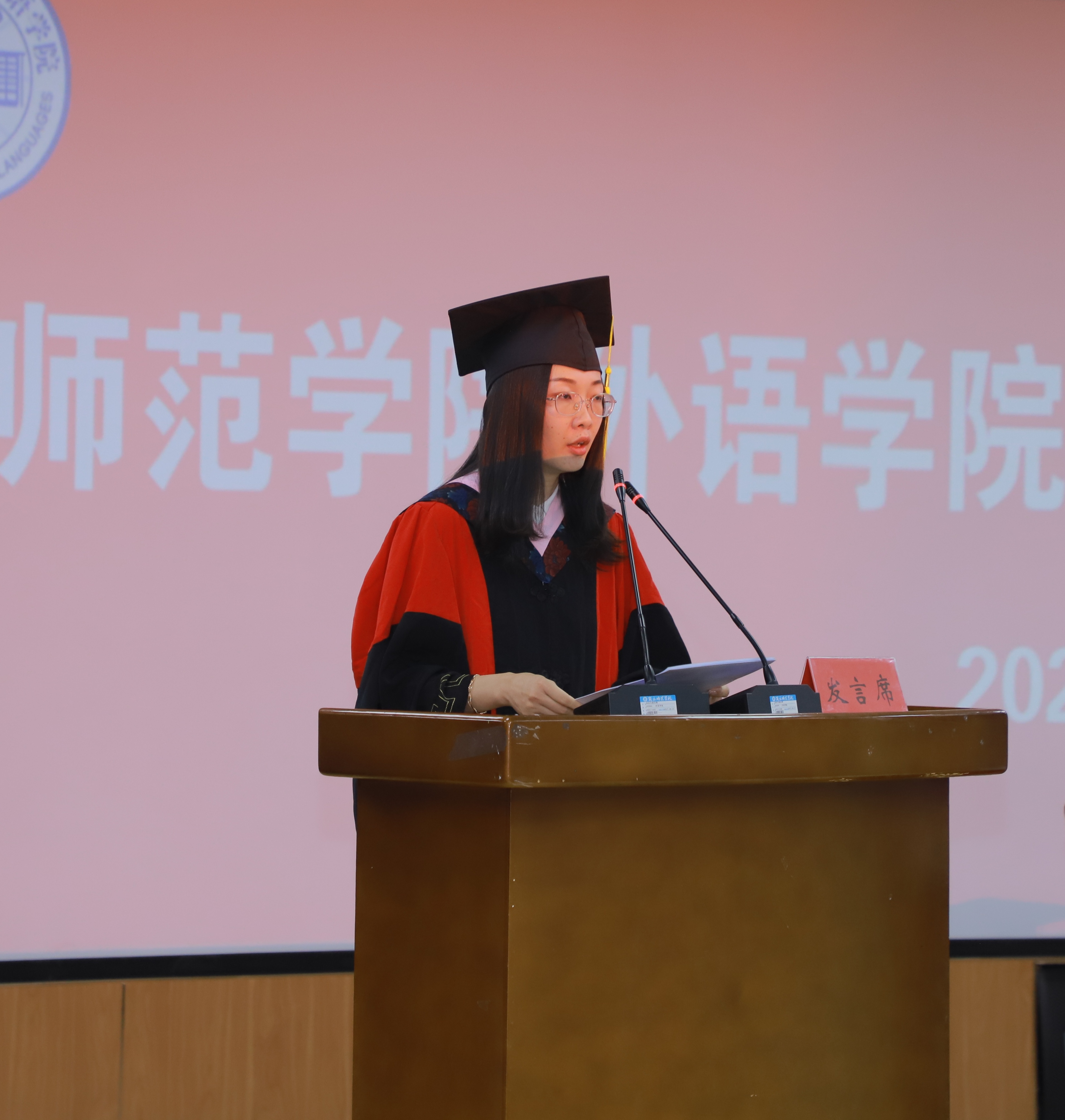 allwincity万象城院长孙艳玲首先致辞,她表示2022届毕业生们在过去四年的学习、实践和志愿服务活动中,知难而进,迎难而上,收获累累,为学校赢得了荣誉,为外语学院增添了光彩。希望大家在今后的日子里不要停下前进的步伐,勇于面对人生的挑战,合理确定自己的人生目标,用乐观和坚强去化解生活中的困难,用爱心和包容去赢得未来。allwincity万象城永远是同学们的坚强后盾,永远的家。