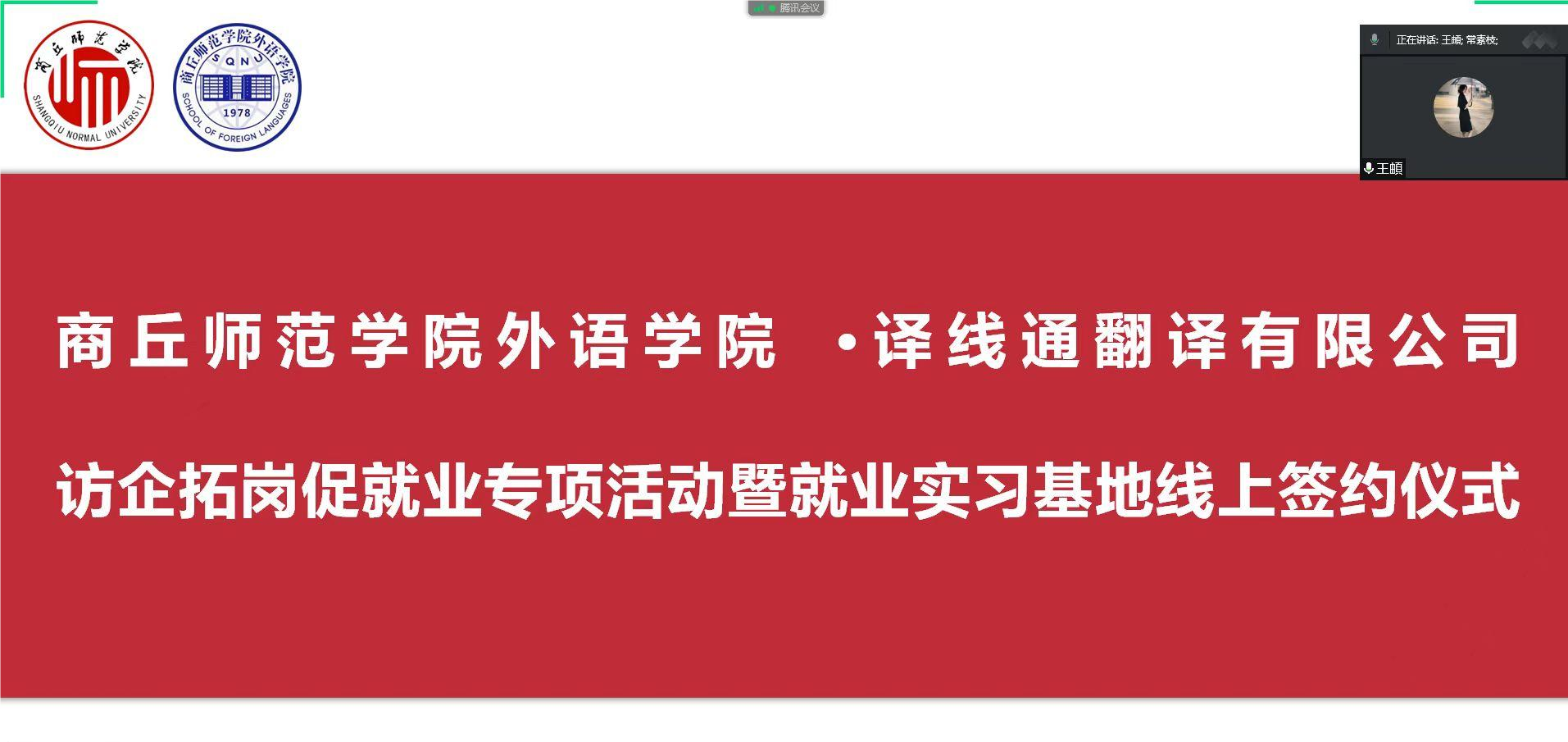 为应对疫情对毕业生就业带来的影响,促进毕业生实现充分就业。8月15日,allwincity万象城与译线通翻译有限公司举办访企拓岗促就业专项活动暨就业实习基地线上签约仪式,活动通过线上线下相结合的方式进行。