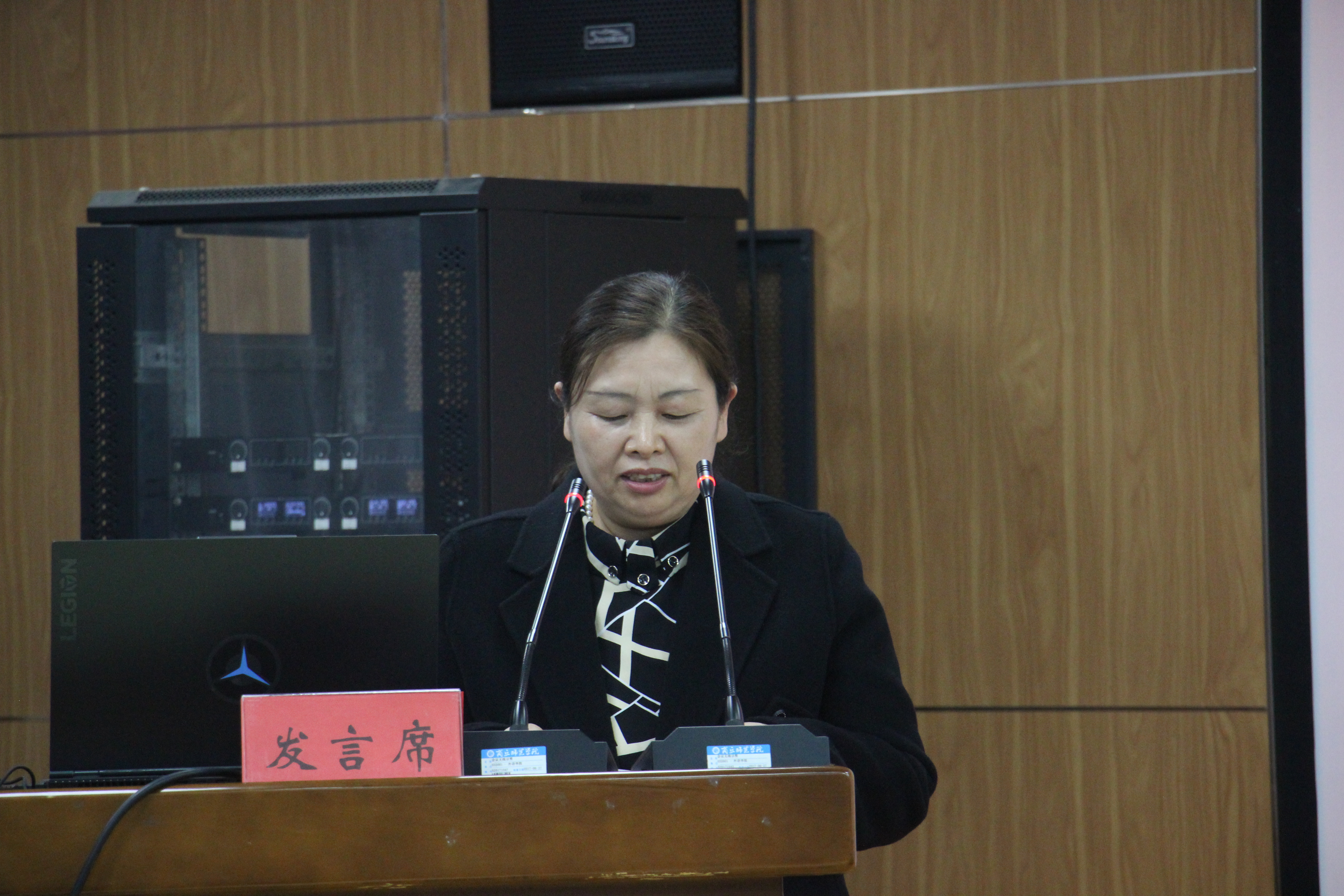 翻译22-1班吕宁作为新生代表发言,表达了对未来四年大学生活的美好憧憬,表示要树立远大理想,志存高远,掌握专业知识,提高综合素养,脚踏实地,不负韶华,努力成长成才。