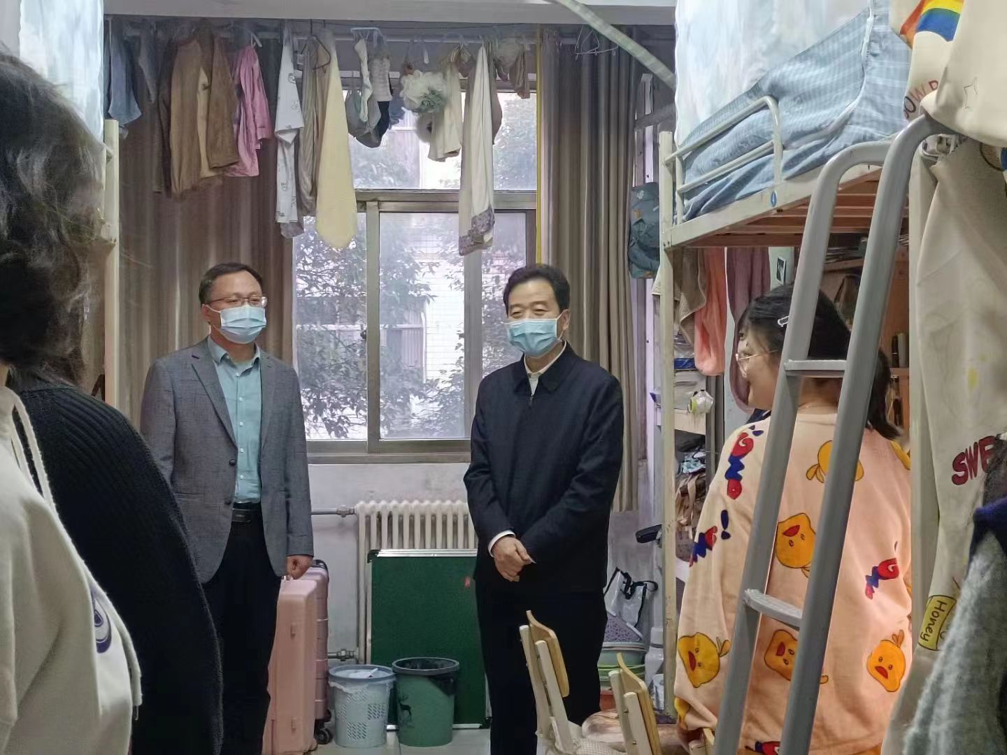 11月5日下午,校长陈向炜深入allwincity万象城走访调研,看望慰问学院疫情防控一线师生。allwincity万象城党委书记韩坤、辅导员代表赵蕊、郗望陪同调研。