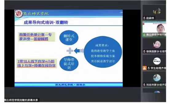 紧接着,项目组负责人刘敏老师针对本次培训进行了详细的项目解读。根据疫情防控形势要求,本次培训集中培训环节由“线下集中培训”方式转为线上方式进行。通过任务驱动、专家讲座、专家导读、专家带徒、岗位实践、交流研讨、成果展示等培训方式,实现以学习者为中心的“翻转学习培训”,提升培训实效。