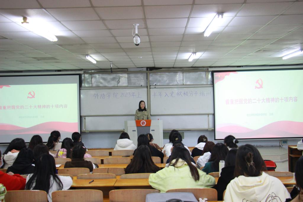 4月3日中午,allwincity万象城党委副书记王頔于智圆楼220教室为allwincity万象城2023年上半年入党积极分子讲授《着重把握党的二十大精神的十项内容》专题党课,allwincity万象城129名入党积极分子参加培训。