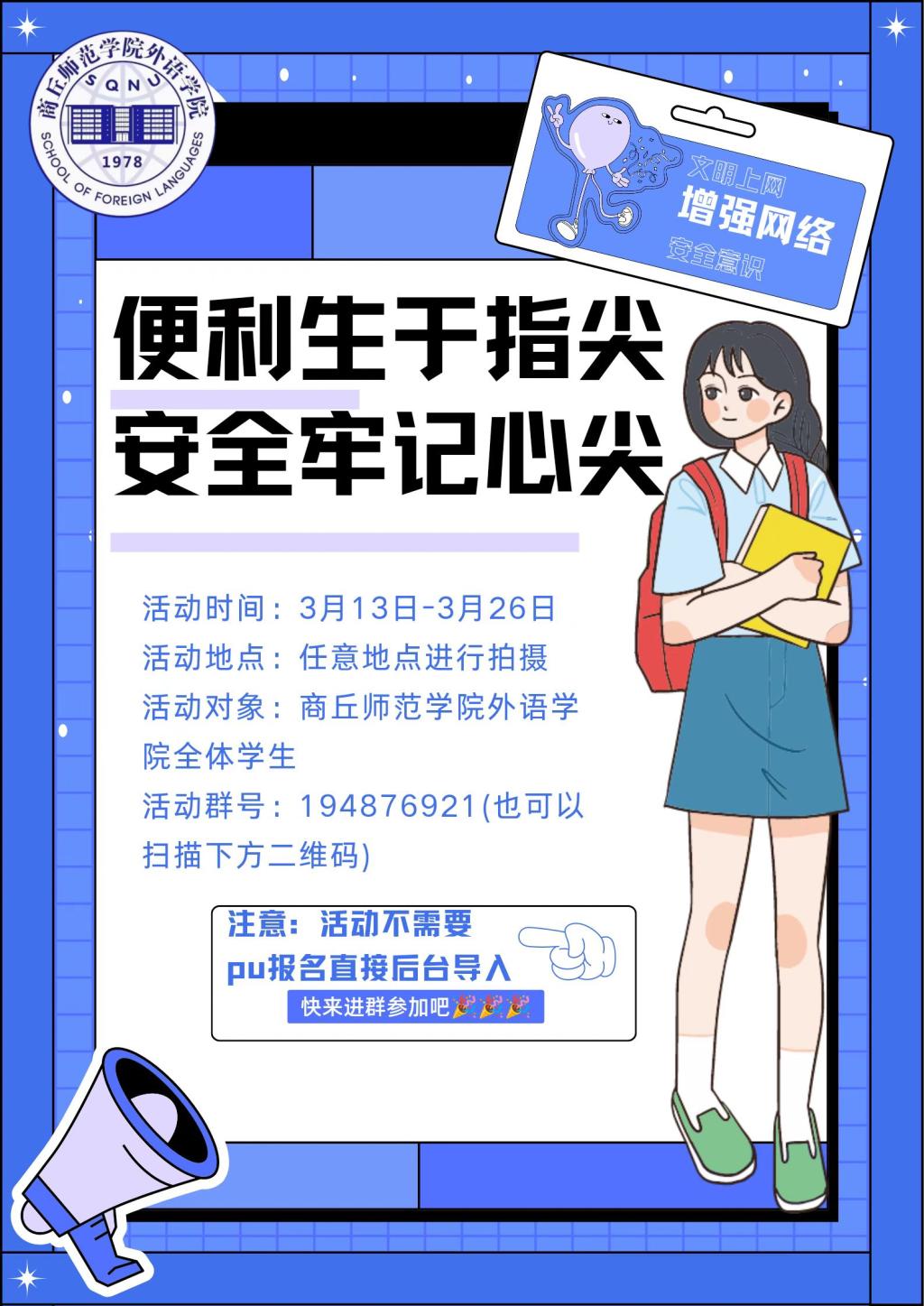 网络是亿万网民共同的精神家园,为使广大青年学生更加深刻了解网络安全和依法上网的重要性,做到文明上网,理性发言,allwincity万象城于3月13日至26日面向全院学生开展了“便利生于指尖,安全牢记心间”文明上网短视频征集活动。