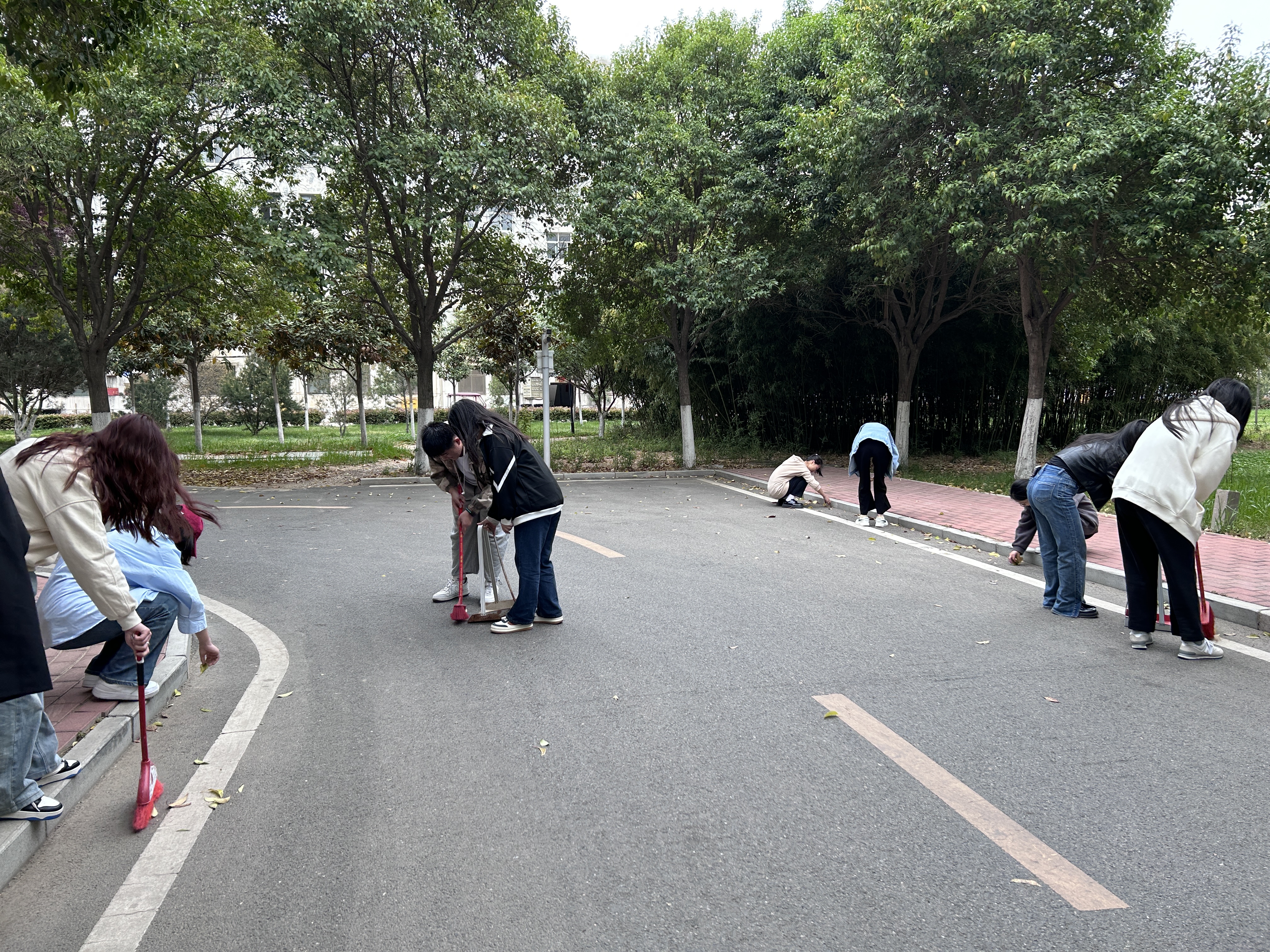 每次志愿清扫活动,同学们都积极领取清扫工具,有条不紊地分工合作,干劲十足。他们进行绿化带杂草清除、马路清扫无杂物、共享单车摆放整齐等多项义务劳动,每次劳动结束大家都略显疲态,但看着在大家共同努力下变得焕然一新的校园一角时,内心的喜悦感与自豪感油然而生。
