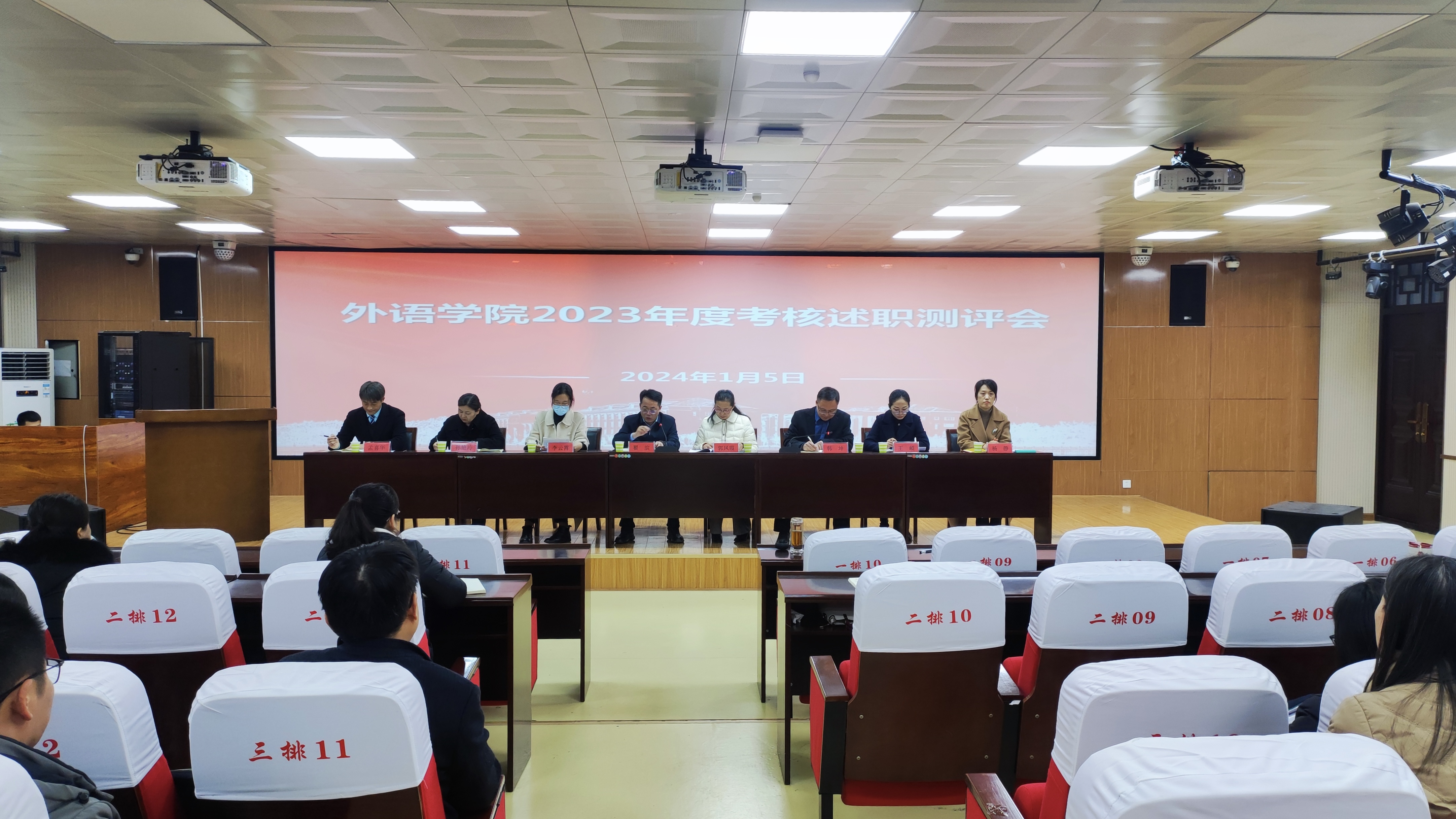 2024年1月5日,allwincity万象城在智圆楼219多功能厅召开了2023年度考核述职测评会议。学校第八考核组组长、副校长翟滨,考核组成员、校纪委第一纪检监察室主任郭凤霞、校党委宣传部理论学习科科长李云霄出席会议。万象城学院领导班子成员和全体教职工参加会议,会议由党委书记韩坤主持。