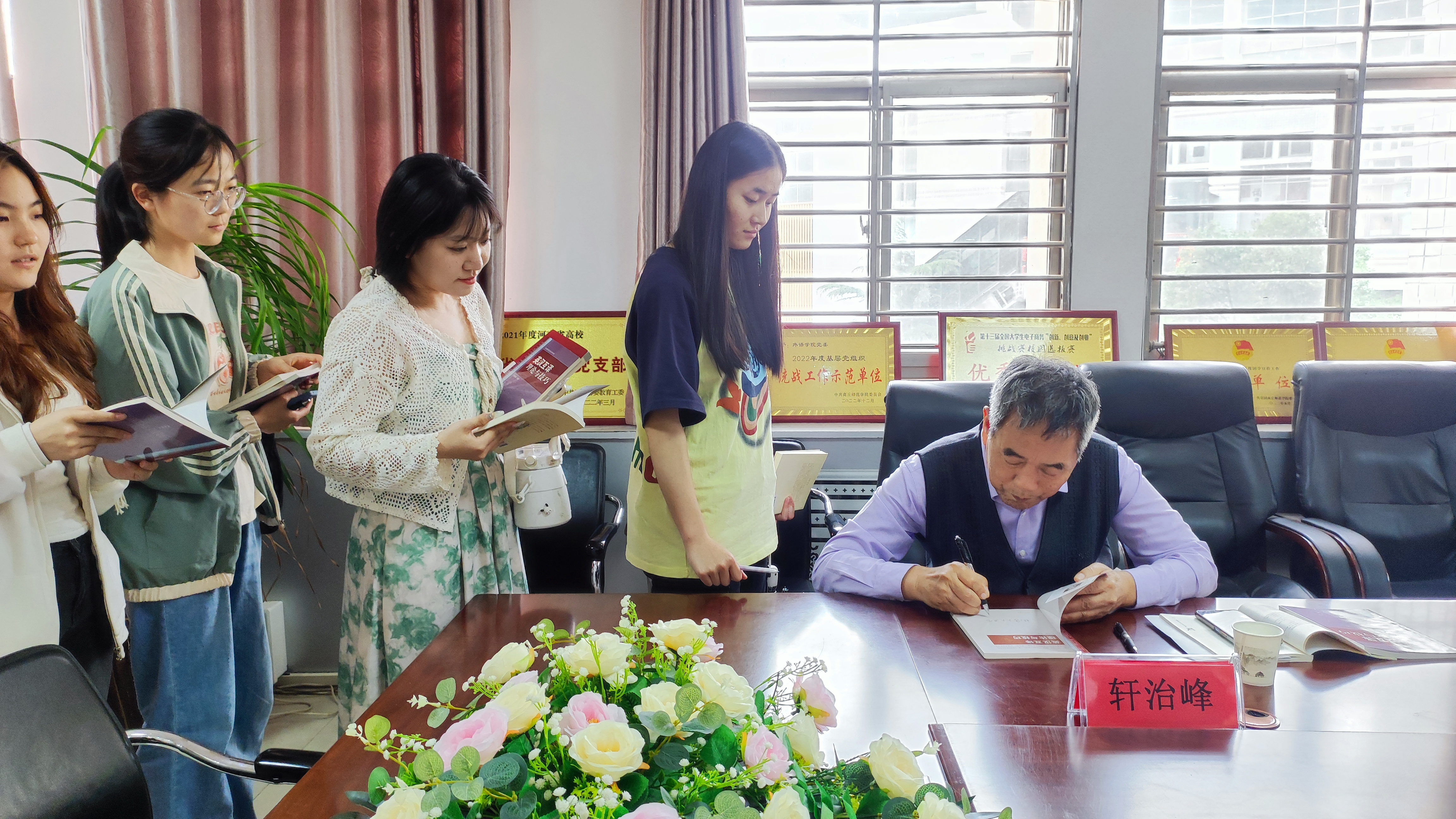 学生代表陈茜对轩教授关心关爱学生学业和成长表示了真诚的感谢,她说《莎土比亚十四行诗新译》和《英汉互译理论与技巧》必将助力同学们的学习,大家一定认真阅读,研磨吸收,不辜负轩教授的厚爱。
