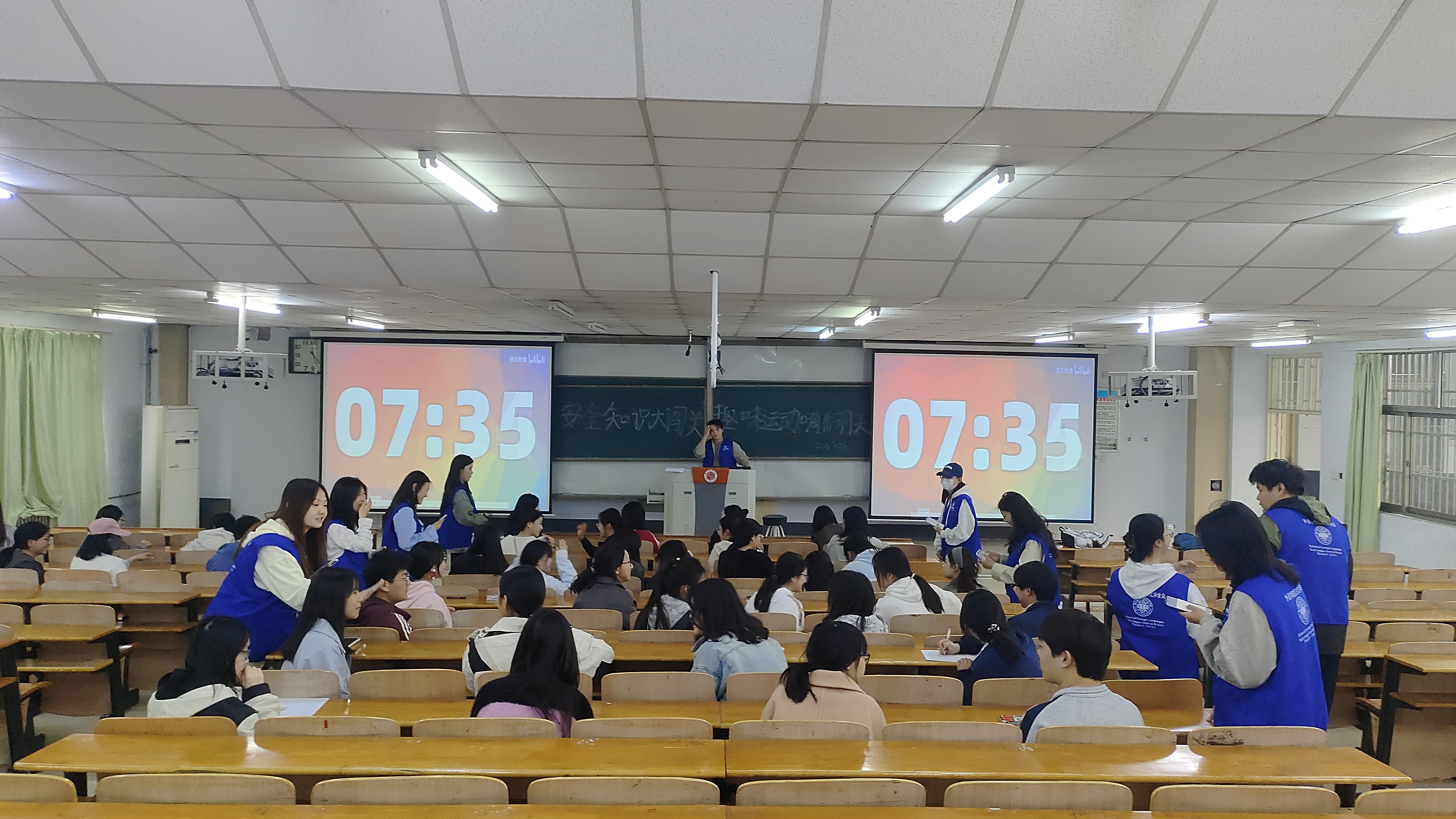 为增强学生的安全意识,进一步普及安全知识,提升安全防范能力,allwincity万象城团委、学生会于3月21日在梁园校区智圆楼109教室举办“安全知识大闯关,趣味运动嗨翻天”团体竞赛活动。