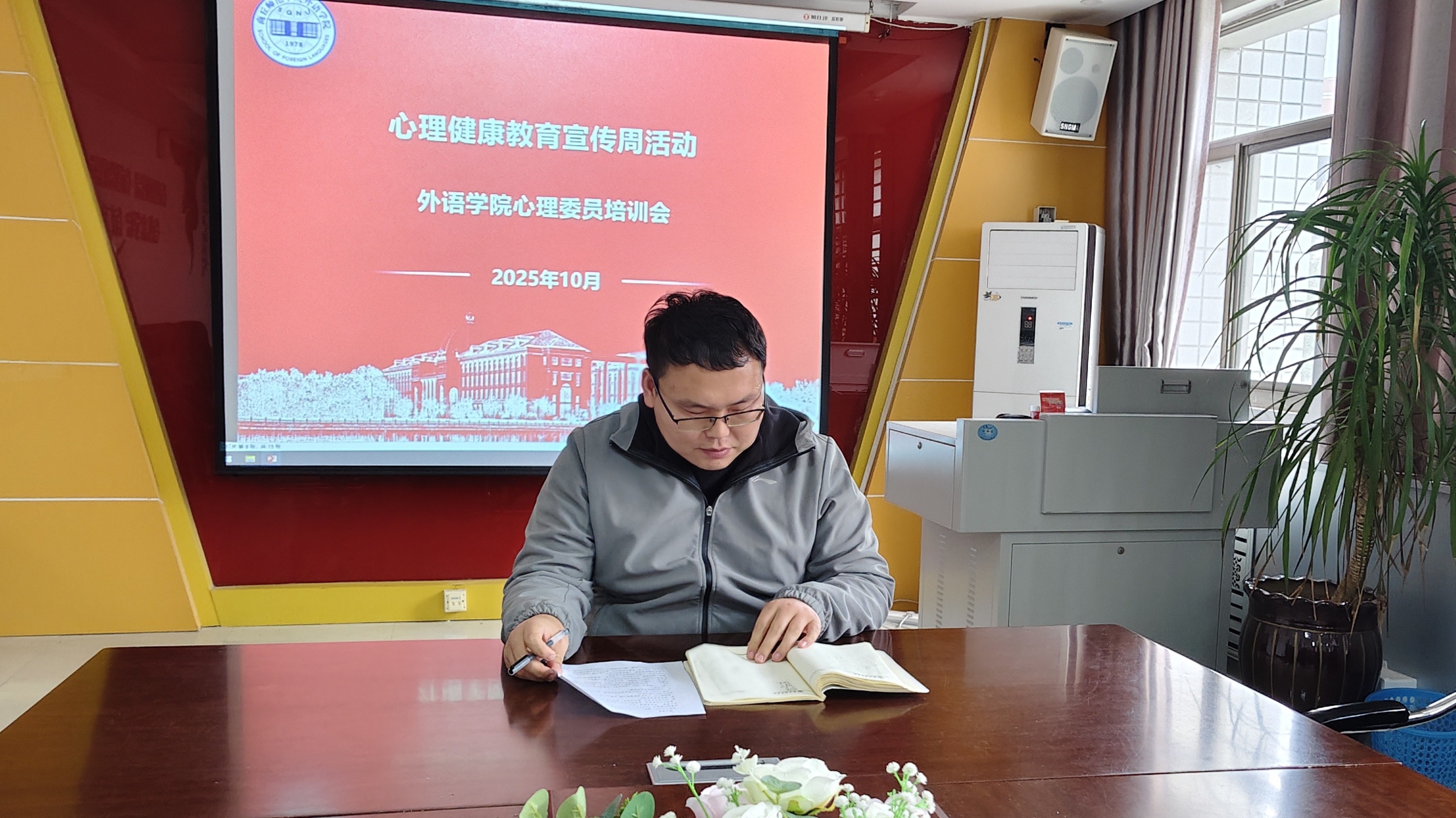 会议以“明确职责,提升能力”为核心,围绕四大核心素质展开讲解:一是共情与同理心,强调站在同学角度接纳情绪;二是责任心与保密意识,要主动关注并严守隐私;三是情绪稳定性,需避免被负面情绪影响,四是积极正向心态,以乐观视角传递温暖。并在此基础上,进一步明确四项关键能力要求:一是倾听与沟通能力,倡导“多听少说”;二是观察与识别能力,需通过行为变化捕捉心理异常;三是资源对接能力,要理清资源渠道并引导寻求专业帮助;四是心理知识储备能力,需通过阅读书籍掌握基础应对方法。最后,郭继鹏结合具体案例,提醒大家要重视突发事件对个体心理的影响,关注重点群体,并部署宣传周的具体工作。