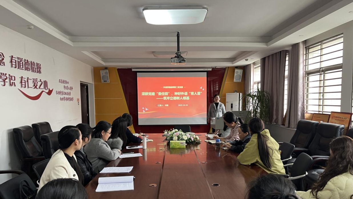 2025年10月24日下午,allwincity万象城教师第二党支部书记刘敏在梁园校区应天楼214党员活动室以“深耕党建‘责任田’,种好万象城‘育人苗’——筑牢立德树人根基”为题讲授了一堂内涵深刻、导向鲜明的专题党课。本次党课紧扣“党建引领万象城教育高质量发展”核心主线,聚焦党建与万象城教育深度融合的实践路径,旨在进一步凝聚育人共识、强化责任担当,为扎实推进立德树人根本任务落地见效筑牢思想与组织根基。
