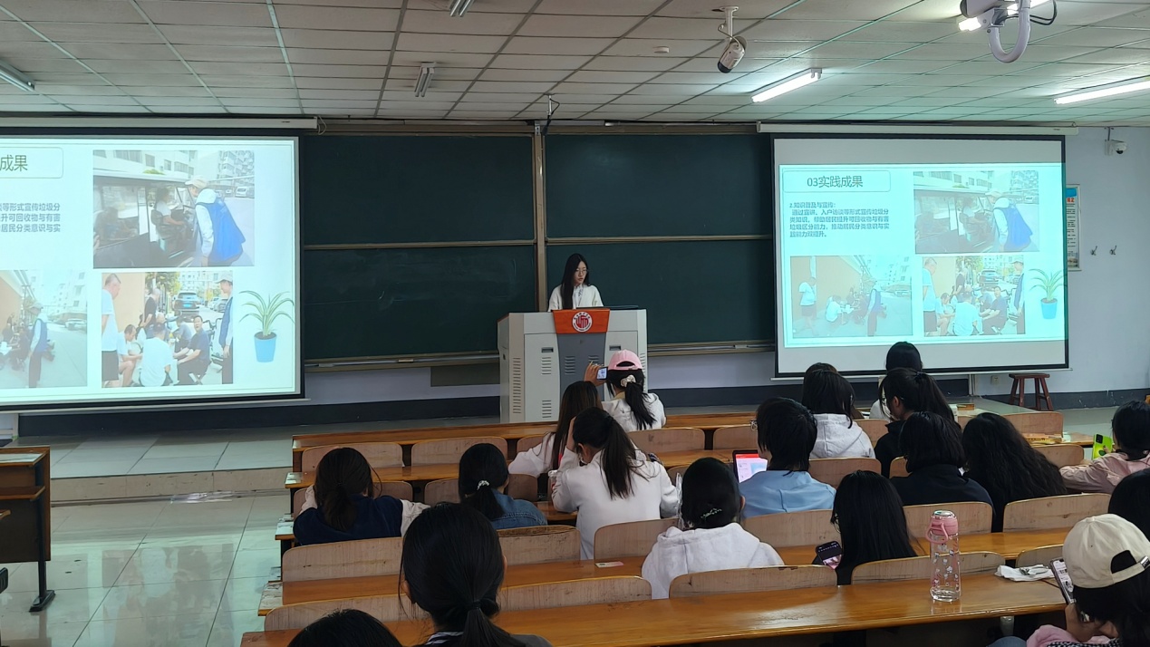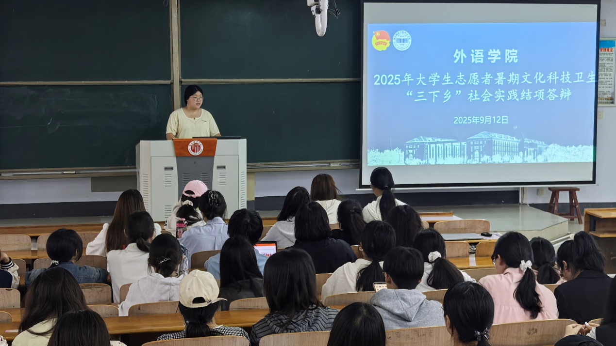 答辩会上,各团队负责人通过PPT展示,从实践内容、成果成效、创新特色等多个维度,对实践项目进行了全面详细汇报。从双语宣传非遗文化到加快生态文明建设,从关爱银发老人到多语种宣讲红色精神,从提升乡村小学英语课堂趣味性到纠正景区标语翻译错误,外院学子将课堂所学与社会实践相结合,用扎实的行动展现专业担当与青春风采。