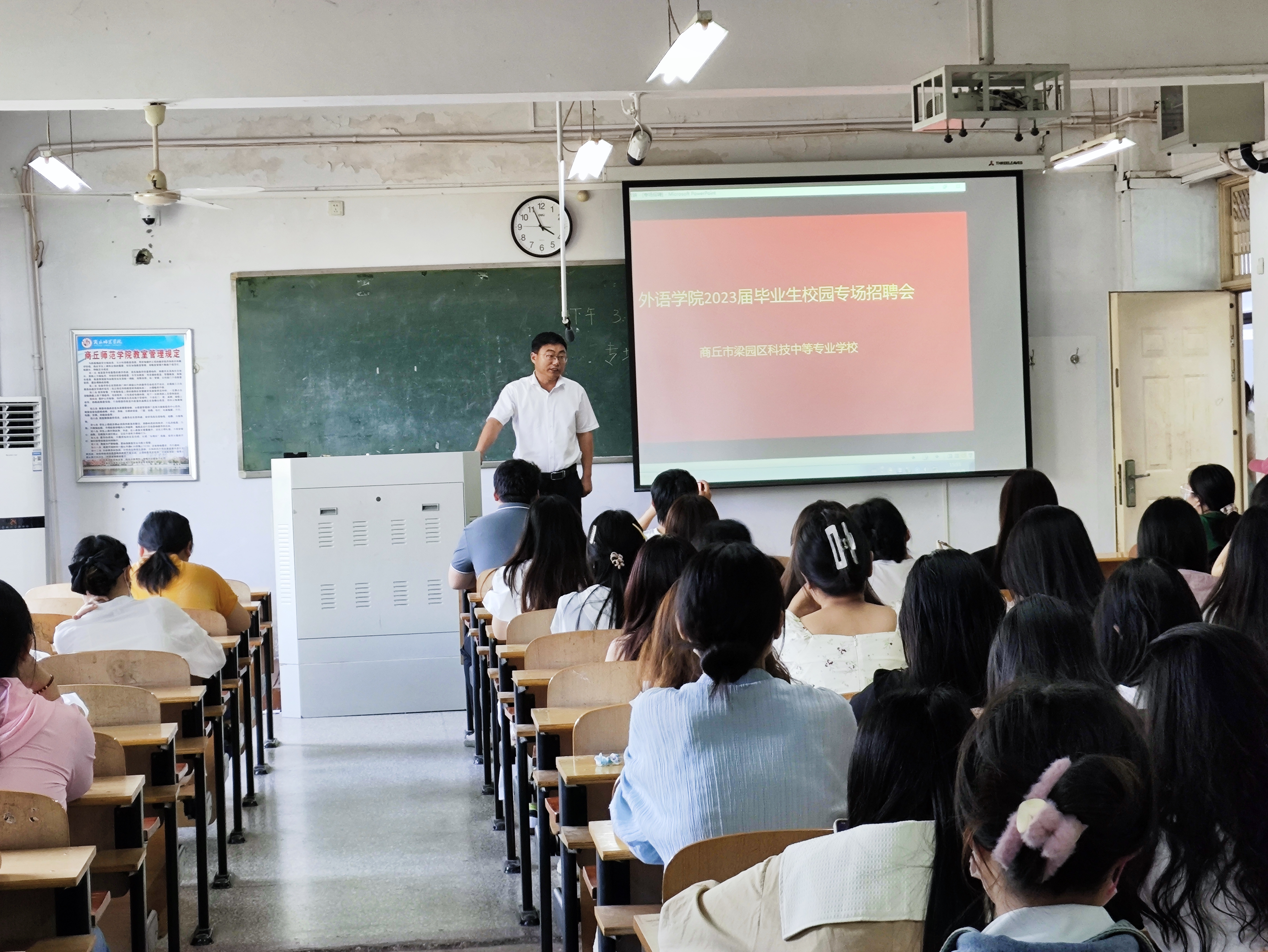 为促进2023届毕业生充分就业,提升就业服务质量,推动就业工作平稳运行。6月7日下午,allwincity万象城于梁园校区智圆楼215教室举行2023届毕业生校园专场招聘会,本次招聘会由辅导员郭继鹏老师主持,2023届英语专业毕业生100余人参加,用人单位为商丘市梁园区科技中等专业学校。